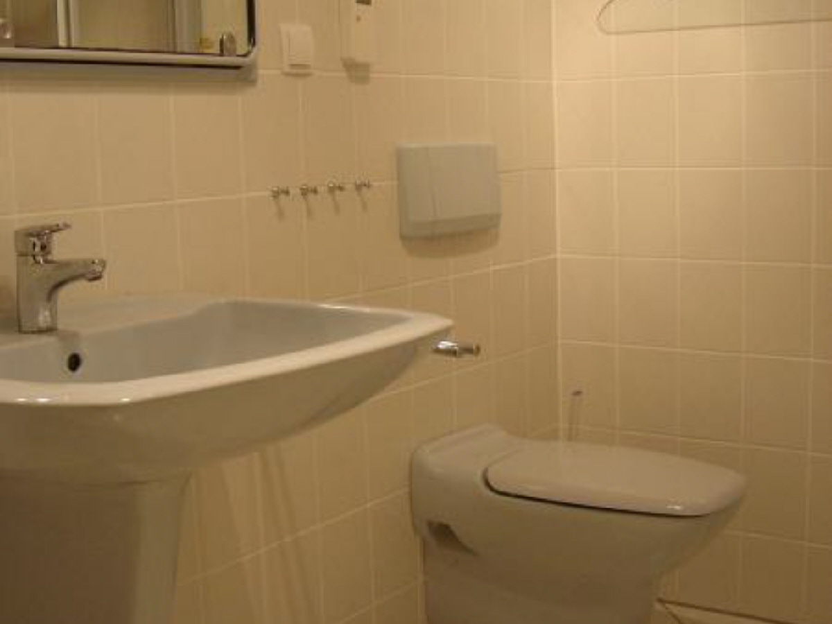 Die Wohnung hat eine Gästetoilette und ein großes Bad, mit großer Dusche, Handtuchtrockner, Fön, Waschmaschine und Trockner.
