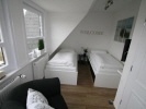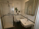 Auf gleicher Ebene befindet sich das schöne, moderne Duschbad mit WC und ein schöner, heller Schlafraum mit zwei Einzelbetten und TV..