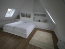 Über eine Wendeltreppe gelangt man vom Wohnraum aus zu dem großen Schlafbereich mit einem großen Doppelbett. Auch hier kann man das Tagesgeschehen auf dem großen Fernseher verfolgen. Aus diesem lichtdurchfluteten Raum haben Sie einen Weitblick über Wenningstedt und einen traumhaften Meeresblick, inkl. dem Rauschen des Meeres.